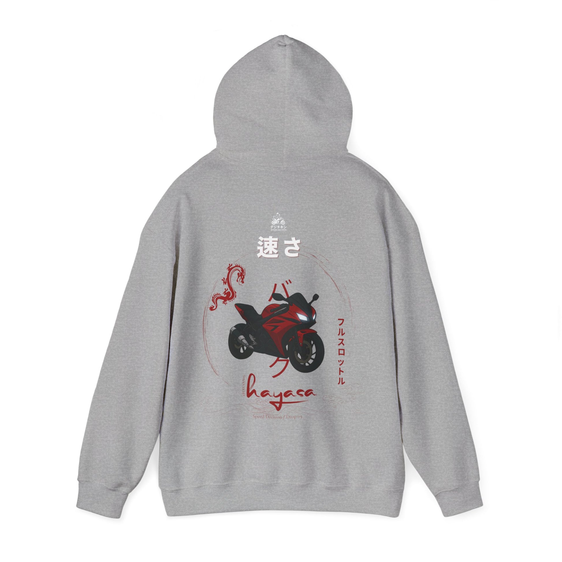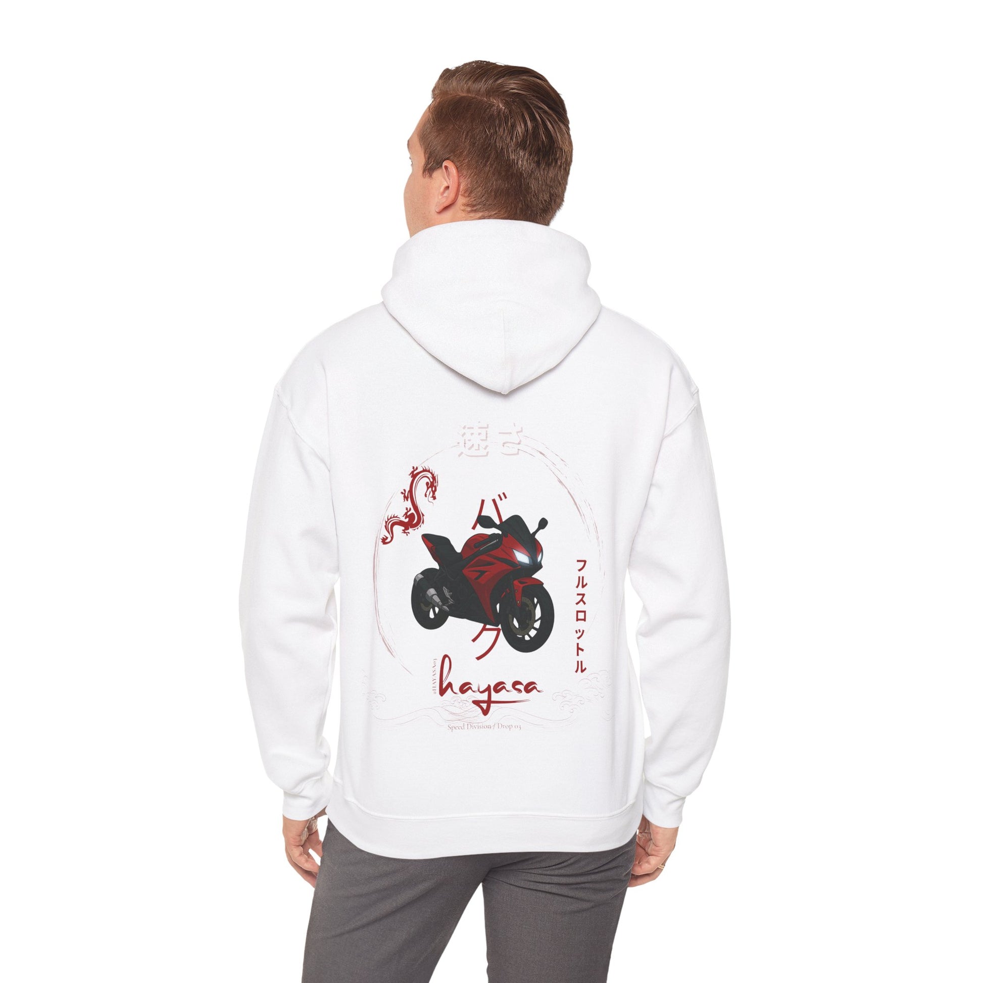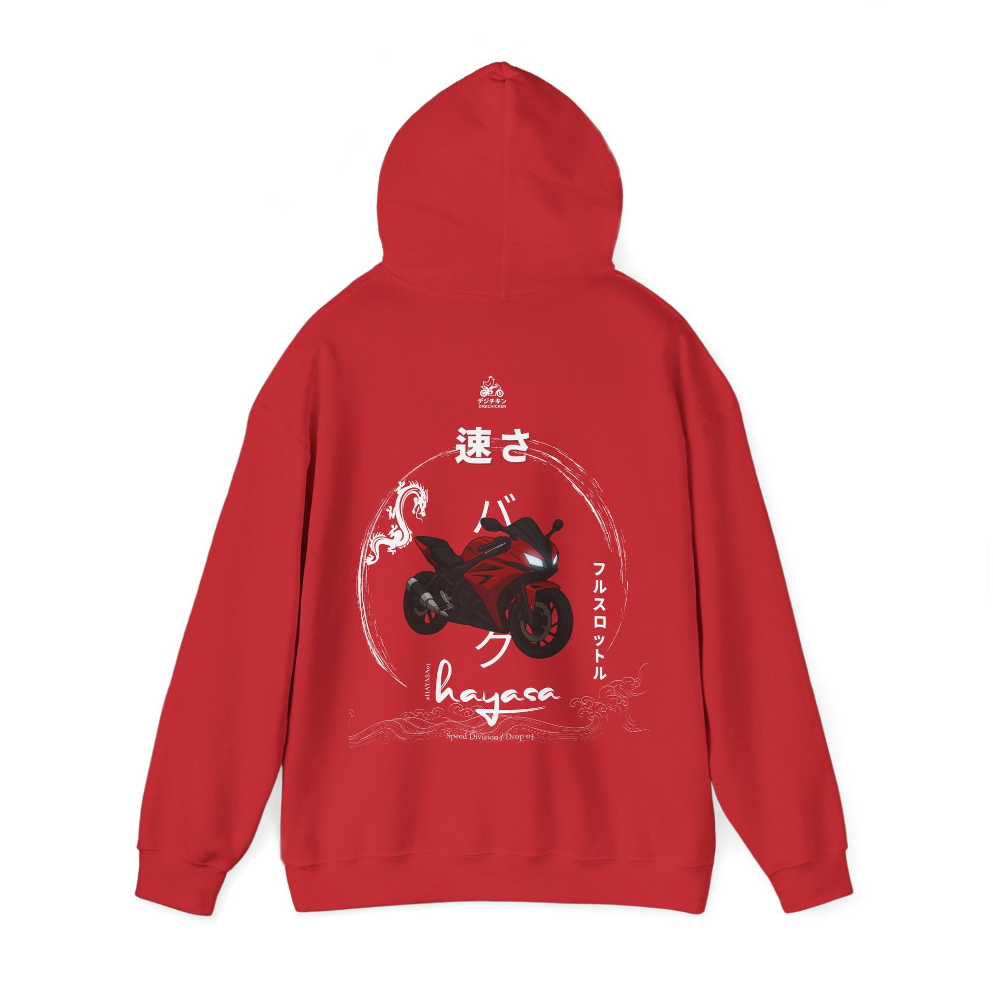 This Hayasa Drop DRAGONRED pullover fuses Japanese street aesthetics with automotive precision. Designed for those who don’t just drive performance – they wear it.