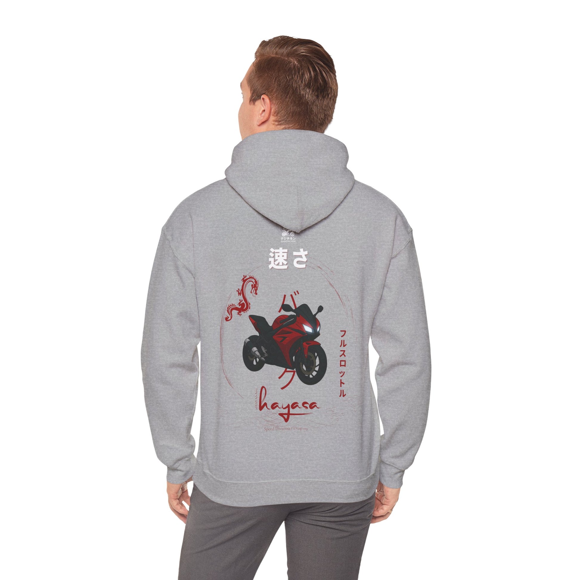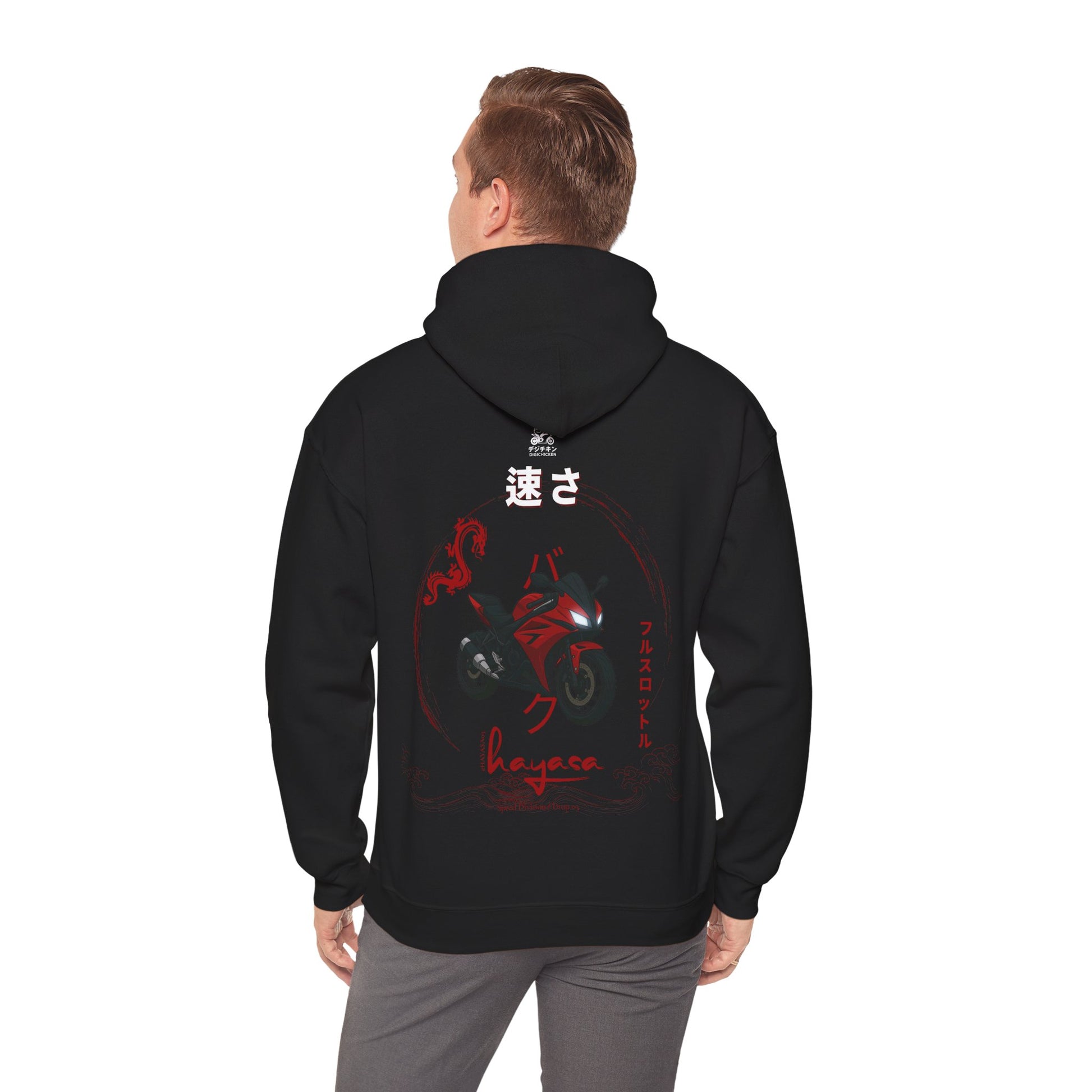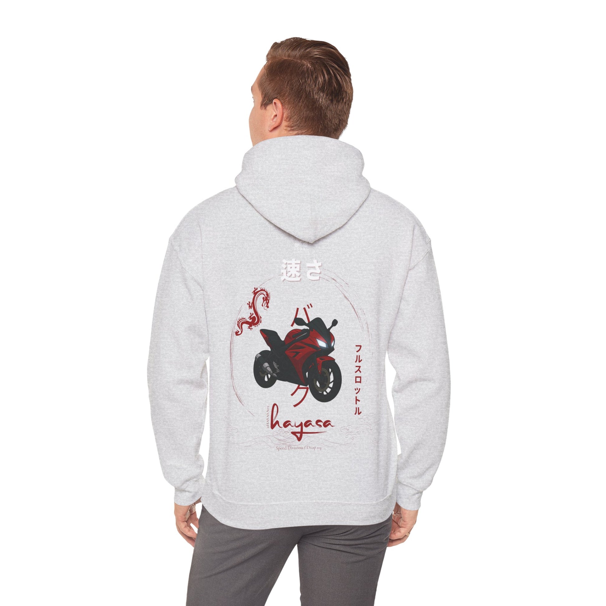 This Hayasa Drop DRAGONRED pullover fuses Japanese street aesthetics with automotive precision. Designed for those who don’t just drive performance – they wear it.